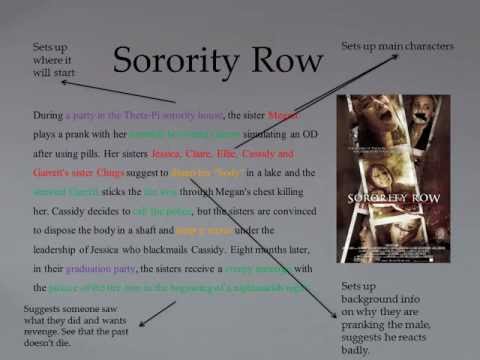 We had to look at five different synopsis' of 5 different films and then colour code it in relation to protagonist, stock characters, themes, background and decor and icons. This would help as it shows how different films sum up their film. It also shows how a lot of horror films have very similar plots but with different kills and different names.